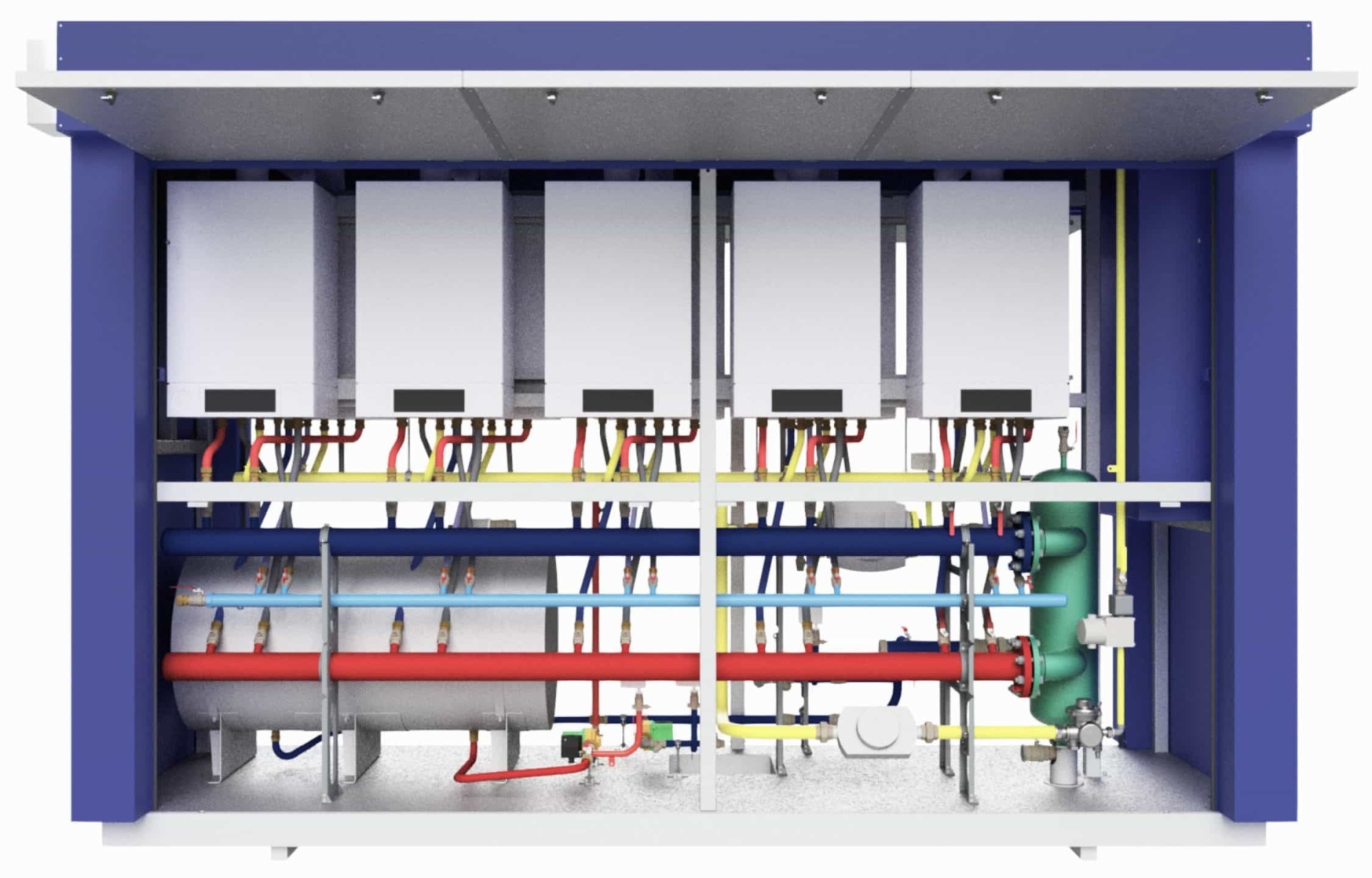 В котлах ТГУ-НОРД применяется каскад бытовых настенных двухконтурных котлов Mizudo M30T мощностью 30 кВт каждый. Это обеспечивает температурный график контура ОВ 60/80°C.